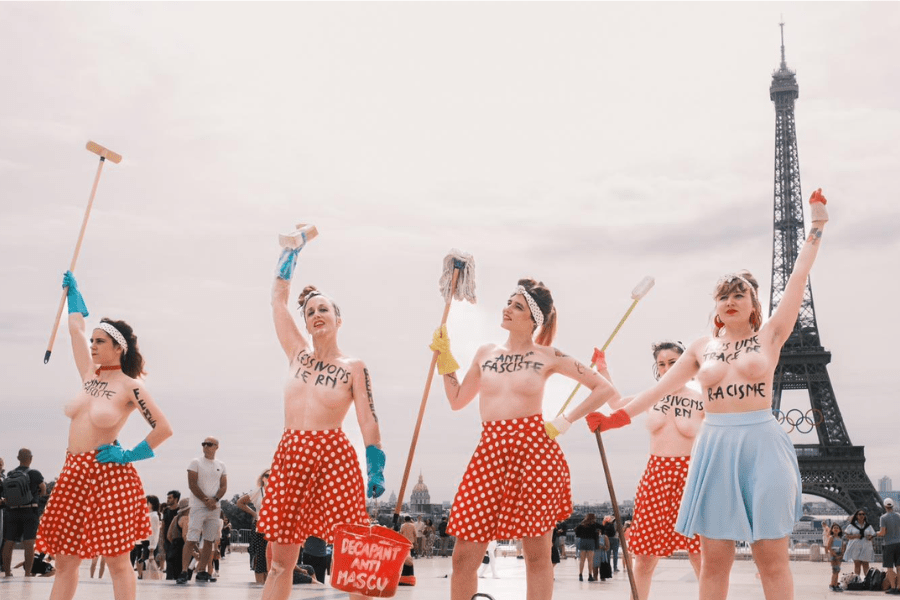 Un grupo de activistas del movimiento feminista Femen protagonizaron este domingo una manifestación en contra de la extrema derecha de Francia, liderada por Marine Le Pen. Portando guantes y utensilios de limpieza para simbolizar la “necesidad de limpiar el fascismo”, las manifestantes llamaron a la población a votar en las elecciones legislativas de este domingo contra el partido de extrema derecha Reagrupamiento Nacional para así evitar “un aumento del racismo y del odio en general”.
