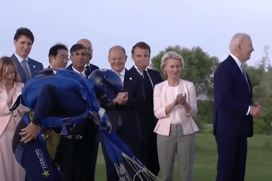 Este jueves el presidente de Estados Unidos, Joe Biden, fue protagonista de un nuevo y extraño episodio en público. Durante un evento de paracaidismo donde participaron los líderes del G7, el mandatario se alejó del grupo y lució desorientado. Dando la espalda al resto de jefes de Estado, Biden comenzó a saludar al vacío. Al percatarse de la situación, su homóloga italiana, Giorgia Meloni, salió a su auxilio y lo recondujo al resto de los mandatarios.
