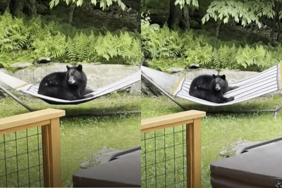 ¿Se imaginan levantarse por la mañana, salir al patio por un poco de aire fresco y toparse de frente con un enorme oso negro? Eso le ocurrió a una familia de un barrio de Waitsfield, Vermont, en Estados Unidos, quienes presenciaron a través de su ventana como un oso se mecía en la hamaca de su patio, mientras otro ejemplar lo miraba con curiosidad a la distancia. El vecino, identificado como Noah Dweck, intentó ahuyentarlos, sin embargo, el oso siguió con su relajo.