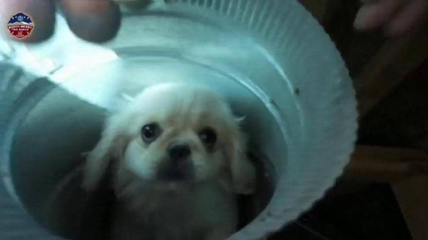 Este era el momento en el que rescataban con éxito a un cachorro de pequinés de un conducto de aire acondicionado. Ocurría este martes en Colorado. El pequeño, de tan solo 12 semanas, y de nombre Archie Bean, llevaba tres horas atrapado.