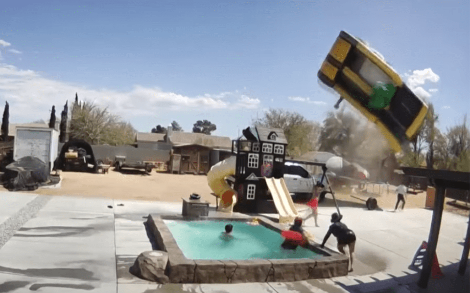 Un fuerte remolino de polvo hizo volar por los aires un juego inflable infantil en la ciudad de Victorville, California. El increíble registro fue captado por una cámara de seguridad, en el que se puede ver el inflable volando por los aires y cómo una cama elástica se levanta producto de las fuertes corrientes. “Fue aterrador, increíble, no sé, no hay palabras para describirlo”, declaró la dueña del hogar, quien celebraba el cumpleaños de su hija de cuatro años.