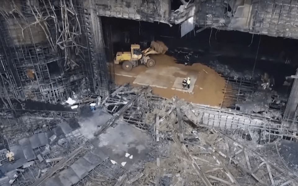 Reducida a escombros quedó la sala de conciertos rusa Crocus City Hall, en Moscú, luego de que el pasado viernes sufriera un atentado terrorista que dejó al menos 137 fallecidos y alrededor de 180 heridos. El registro expone el estado en el que terminó el vestíbulo producto de un incendio desatado en el recinto.