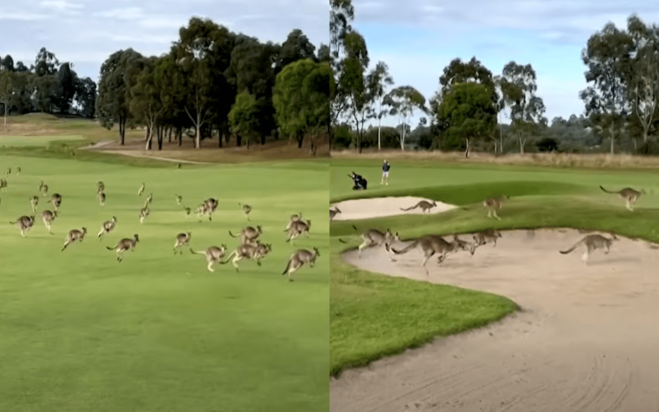 VIDEO: Decenas de canguros invaden un campo de golf en...