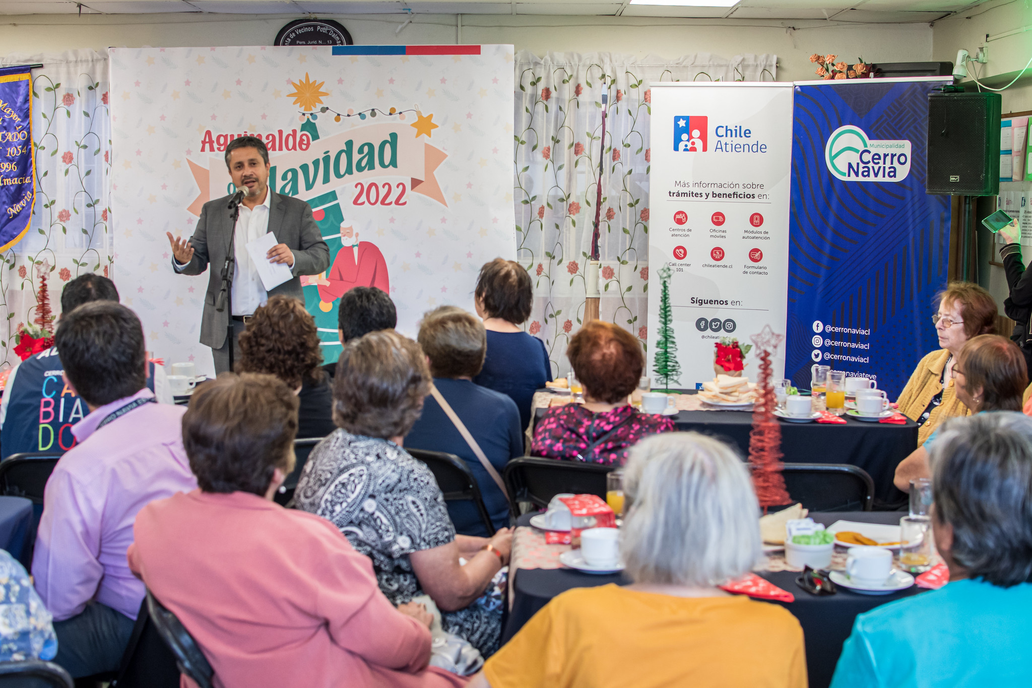 En el encuentro participaron alrededor de 50 personas mayores que este año recibirán su Aguinaldo de Navidad, quienes pudieron realizar consultas sobre éste y otros beneficios que entrega el IPS. Estuvo presente el alcalde de Cerro Navia, Mauro Tamayo.