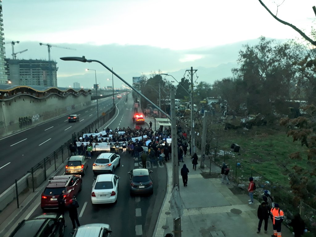 Los manifestantes que forman parte del movimiento Allegados de Peñalolén llegaron al sector de Américo Vespucio con Las Torres y cortaron el tránsito. Incluso algunos lograron colgarse de una pasarela, con el respectivo peligro de caer desde altura.