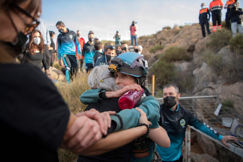 La escaladora, que entró en una cueva de la localidad granadina de Motril con 48 años, salió con 50 cumplidos. A primera hora de este viernes, un grupo de espeleólogos y una psicóloga bajaron a la cueva para dar cobertura a la deportista en su salida al exterior, la cual se prolongó unos 40 minutos.
