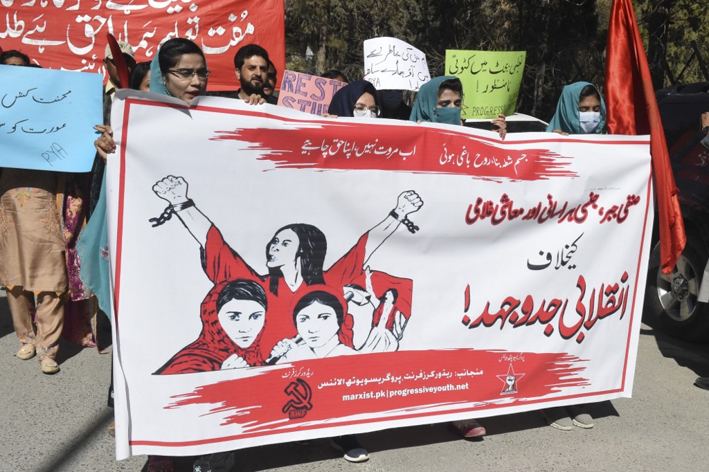 Miles de mujeres participaron el lunes en las marchas organizadas para conmemorar ese día en Pakistán, un país musulmán profundamente conservador.