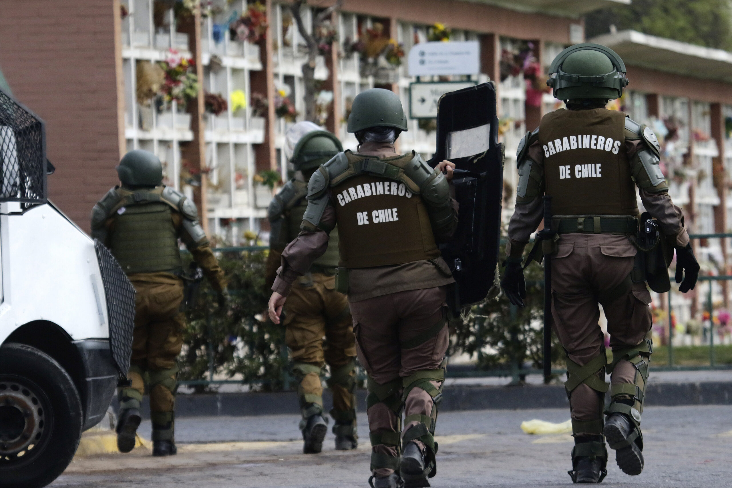 Carabineros se encuentra realizando distintas fiscalizaciones en el Cementerio Metropolitano -donde se realizará el entierro- y en la población José María Caro, donde la noche de este martes hubo tres detenidos luego de que se registraran disparos al aire y fuegos artificiales.