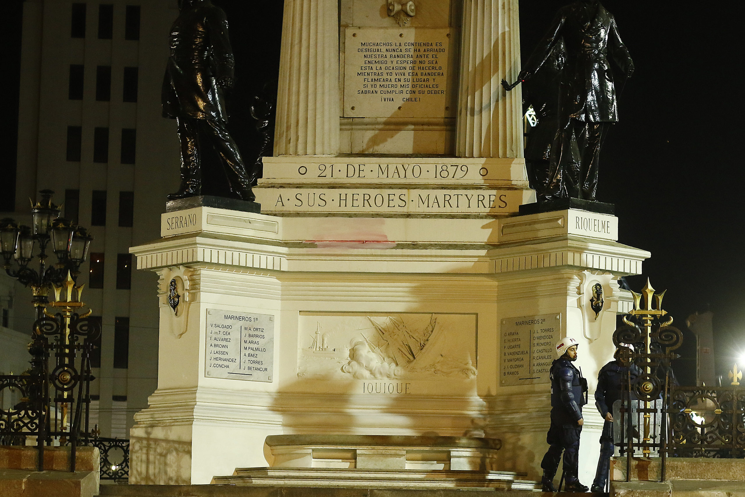 La Armada condenó “de la forma más categórica este cobarde ataque al Monumento donde yacen y se recuerda a aquellos valientes chilenos que en un momento de la historia, cumplieron con su noble misión de entregar la vida por nuestro país, por lo que el ataque no es sólo hacia la Institución, sino a la memoria e historia de todos quienes hemos nacido en esta patria”.
