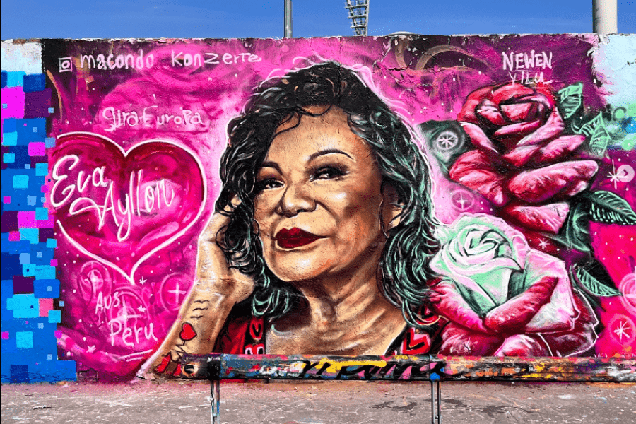 La imagen de la célebre cantautora peruana, Eva Ayllón, fue plasmada en el Muro de Berlín, gracias a un grafiti realizado por el artista chileno Newen Vilu. Esta obra, que resalta la figura de una de las artistas más destacadas de Latinoamérica, está ubicada en Mauerpark (Parque del Muro), que desde la caída del Muro se ha convertido en uno de los lugares favoritos de descanso y esparcimiento de los berlineses.