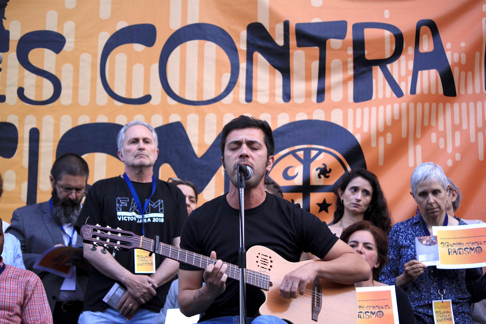 Entre ellos participaron el cantante Gepe, el artista Alejandro “Mono” González, los actores Aline Kuppenheim, Paulina Urrutia, Pablo Schwartz y Héctor Morales, la escritora Elvira Hernández y Amanda Jara, quienes junto a representantes de organizaciones migrantes y del mundo cultural, social y académico, hicieron un llamado a reflexionar y reposicionar el rol de los derechos fundamentales en la sociedad, y alertaron respecto a las consecuencias de que Chile no suscriba el Pacto Mundial para la Migración de Naciones Unidas.