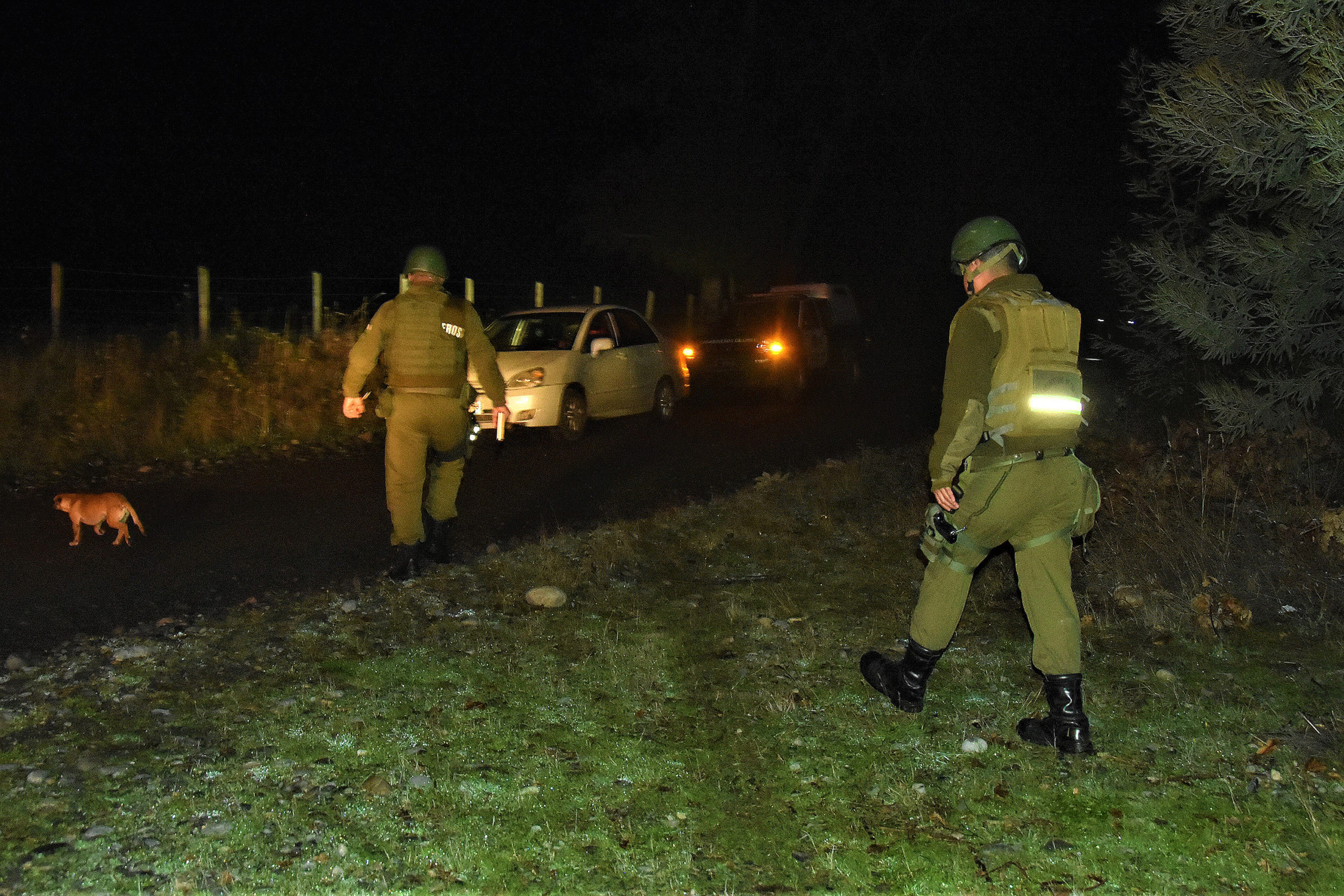 “(Los carabineros) cuando realizan maniobras para poder habilitar la ruta, escuchan a distancia cinco disparos aproximadamente, al parecer de escopeta. Se logra avanzar de esta barricada y se encuentra un camión quemándose y a un grupo familiar que había sido atacado por cuatro delincuentes, quienes portaban armas largas, se encontraban encapuchados y le efectuaron una cantidad indeterminada de disparos a la estructura del camión”, aseguró Torres.