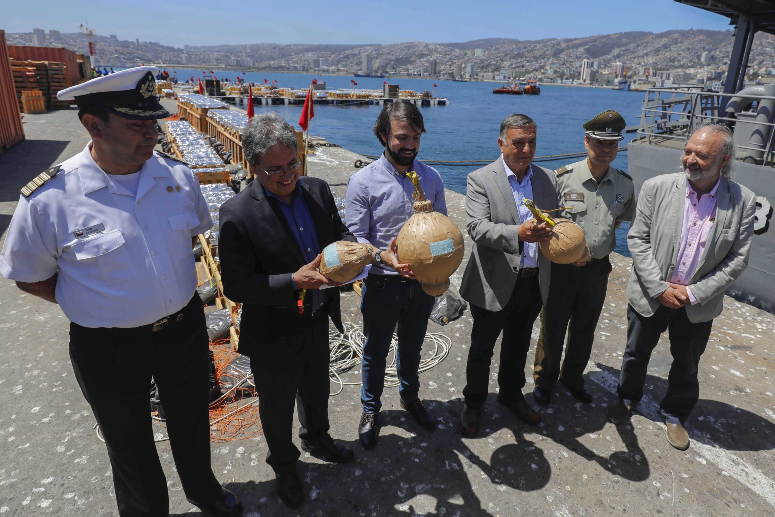El gobernador marítimo del principal puerto del país, Juan Guajardo, confirmó que la instalación de las balsas con las bombas de pirotecnia se ha llevado a cabo con normalidad, pese a las marejadas, las que están descartadas para este 31 de diciembre.