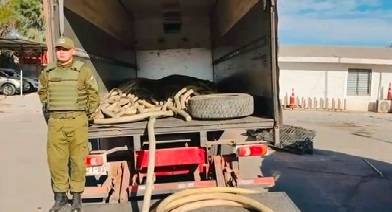 A su revisión, los policías verificaron que el vehículo transportaba cables de cobre industrial tipo minero, de uso exclusivo en faenas extractivas, robados desde la minera Teck.