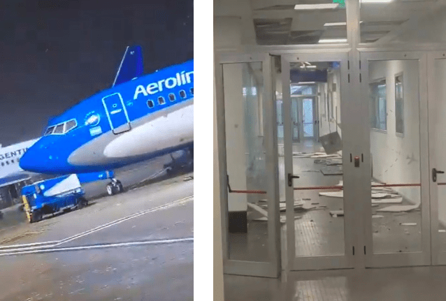 🟥⛈️#Tormenta: daños en #Aeroparque. El aeropuerto se encuentra afectado parcialmente. Algunos aviones fueron movidos por el viento. Posibles indicios de que pasaron #tornados en el AMBA [PRELIMINAR]. pic.twitter.com/haTBBiPdjH