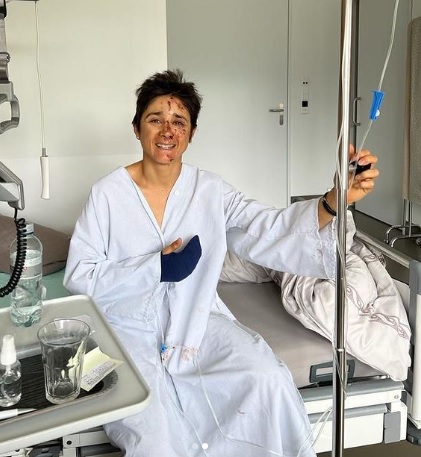 Mediante su cuenta de Instagram, y mostrando una foto del estado en que quedó, la deportista señaló que “hoy no es un día fácil porque tengo que anunciarles que tuve un accidente este fin de semana que me tendrá por un tiempo fuera de las pistas”.