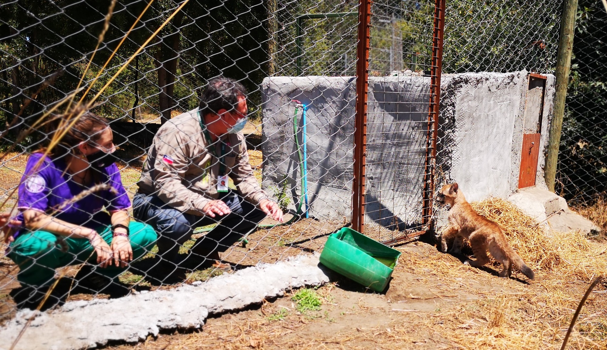 Los pumas permanecieron de manera temporal en el centro de rehabilitación de fauna silvestre del Parque Metropolitano de Santiago, donde fueron trasladados por el SAG para su evaluación y atención. El cachorro macho llegó el 14 de noviembre pasado proveniente de la Región de Coquimbo, manifestando la conducta propia de un animal habituado a estar en contacto con el ser humano: ronronea, busca la presencia de las personas y consume sus alimentos frente a humanos.
