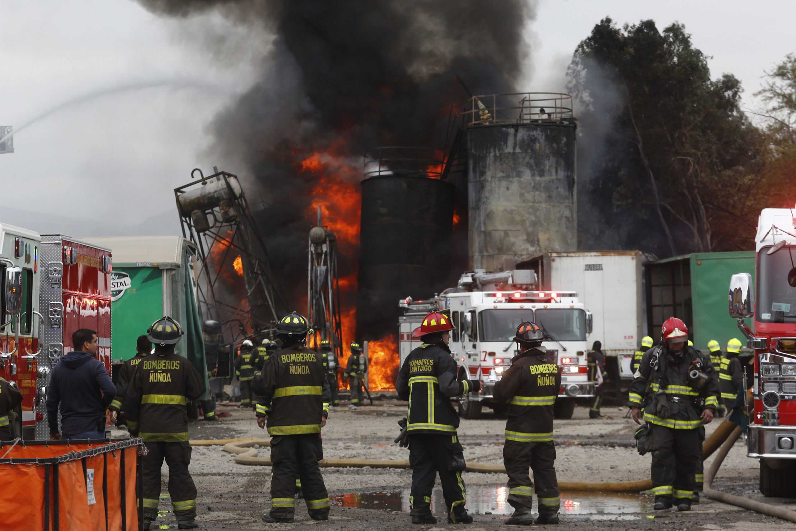 El siniestro se inició pasada la 1:00 de la madrugada de este lunes en la planta ubicada al interior del parque industrial Valle Grande, en avenida La Montaña y Los Nogales, comuna de Lampa, donde trabajan más de 200 voluntarios de Bomberos.