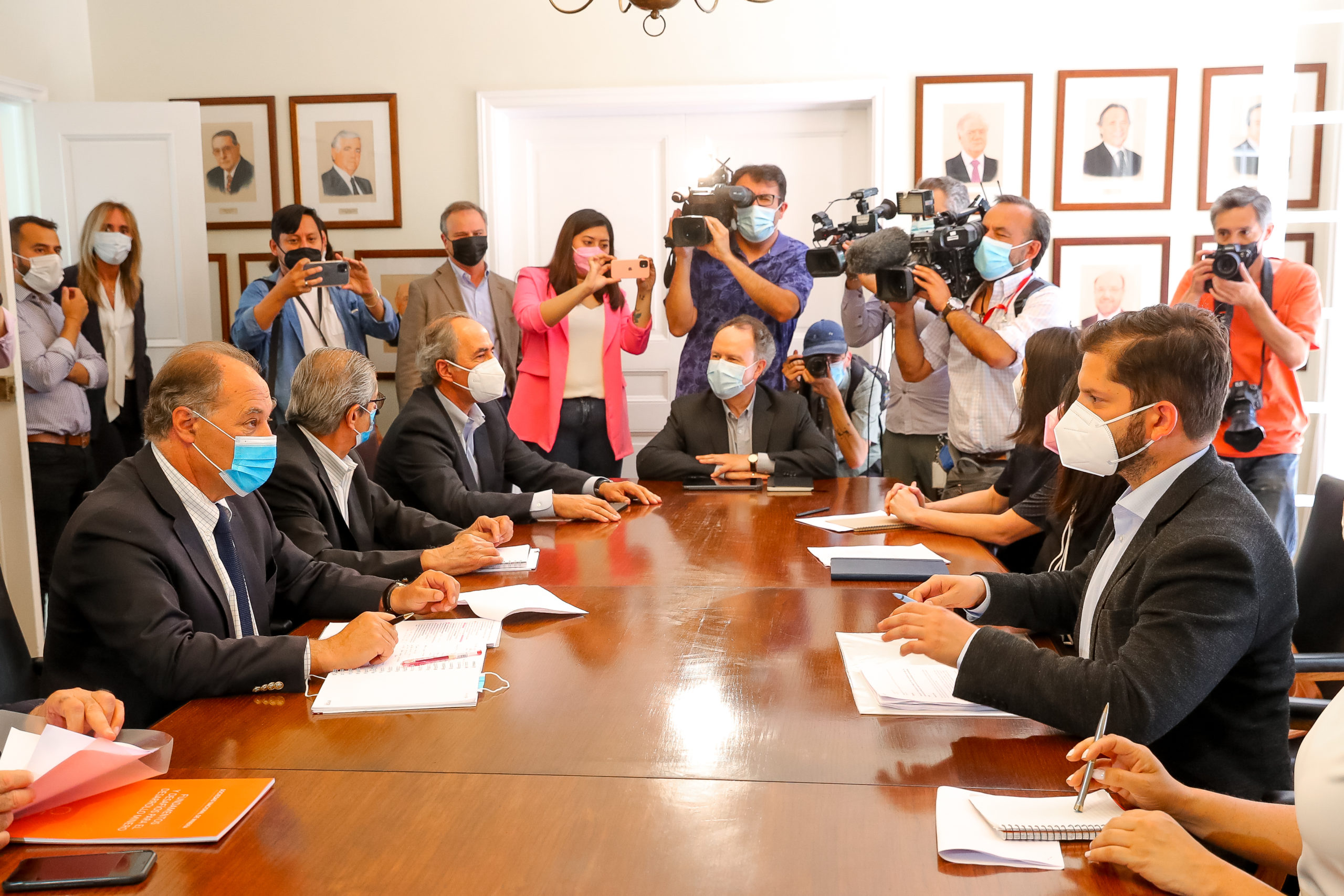 Boric explicó que “es una conversación que no habíamos tenido, la queríamos tener en la primera vuelta, pero justo me enfermé por Covid-19 y no la pudimos tener y creo que es un primer paso muy significativo. Nosotros tenemos una voluntad de realizar transformaciones con estabilidad, transformaciones que son importantes para asegurar derechos a los chilenos y chilenas en materia de salud, pensiones, vivienda, educación”.