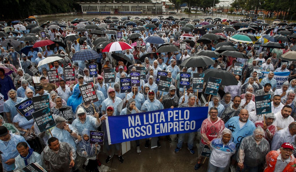 Miles de trabajadores de Ford protestaron este martes contra el cierre de todas las fábricas de automóviles de la empresa norteamericana en Brasil, anunciado el lunes de manera sorpresiva por la compañía estadounidense.