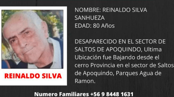 Equipos de Carabineros, Bomberos, Socorro Andino y la Municipalidad de Las Condes se encuentran buscando a Reinaldo Silva, de 80 años.