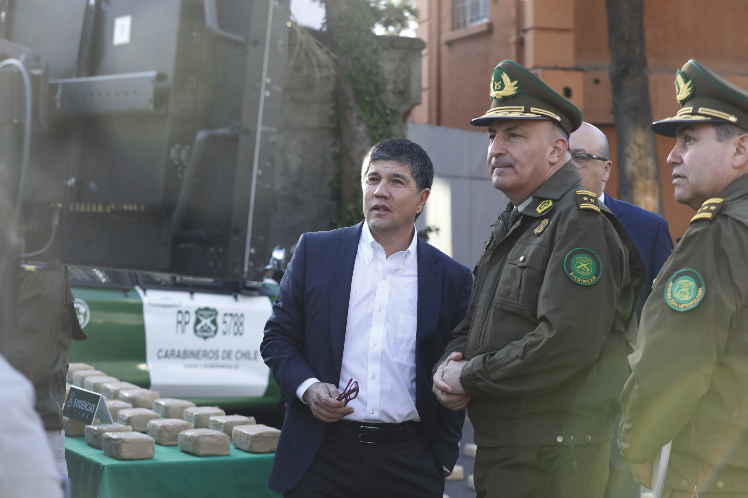 En la actividad realizado en el Departamento Antidrogas OS7 estuvo presente el subsecretario del Interior, Manuel Monsalve; el director nacional de Orden y Seguridad de Carabineros, general inspector Enrique Monrás; el director Control Drogas e Investigación Criminal, general Alex Chaván, y el fiscal jefe de la Fiscalía Local San Antonio, Osvaldo Ossandón.
