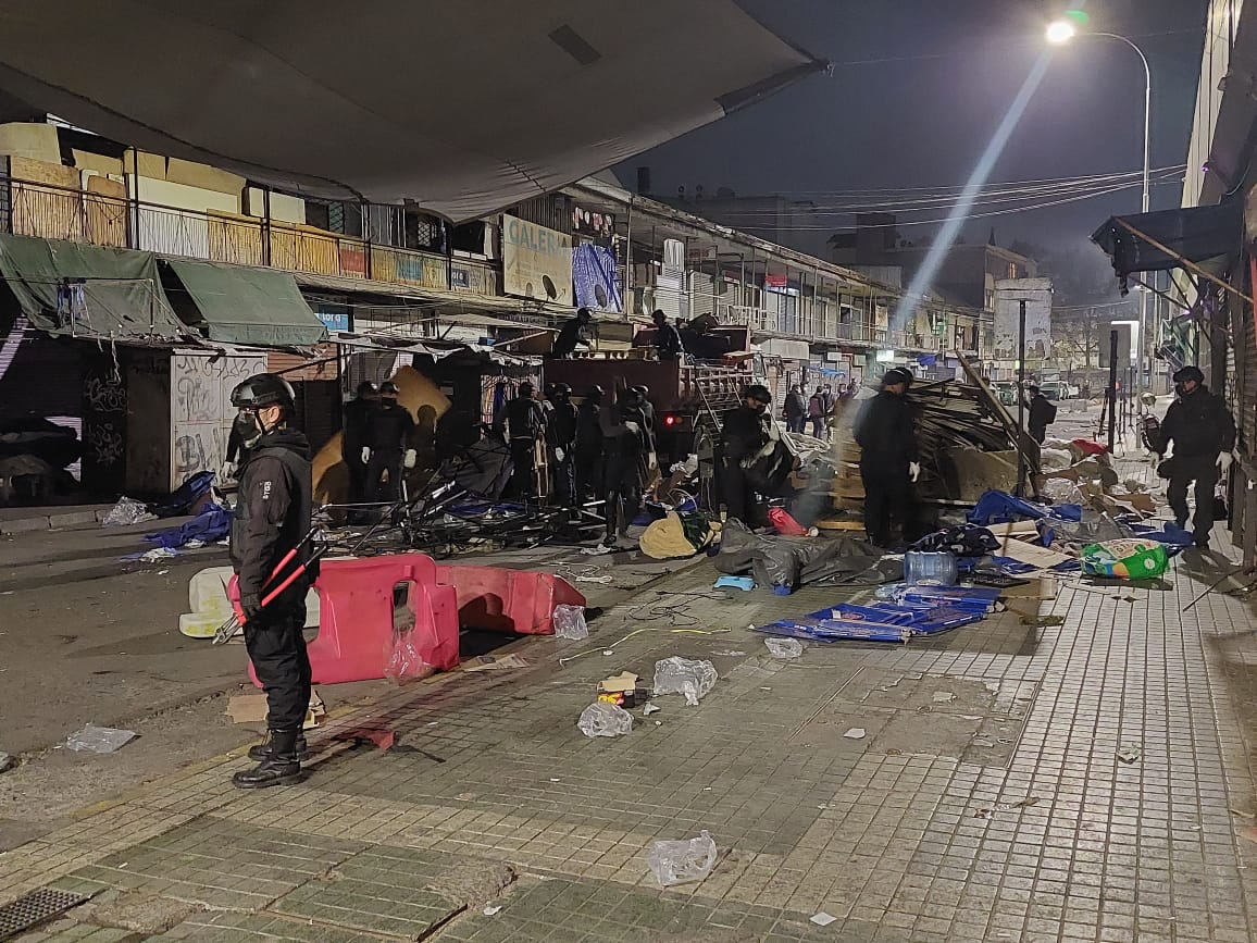 En las horas del operativo incluso había algunos vendedores que pernoctaban en el lugar. Los que no registraban permiso municipal fueron desalojados, acción que terminó con más de 50 toldos incautados por la policía.