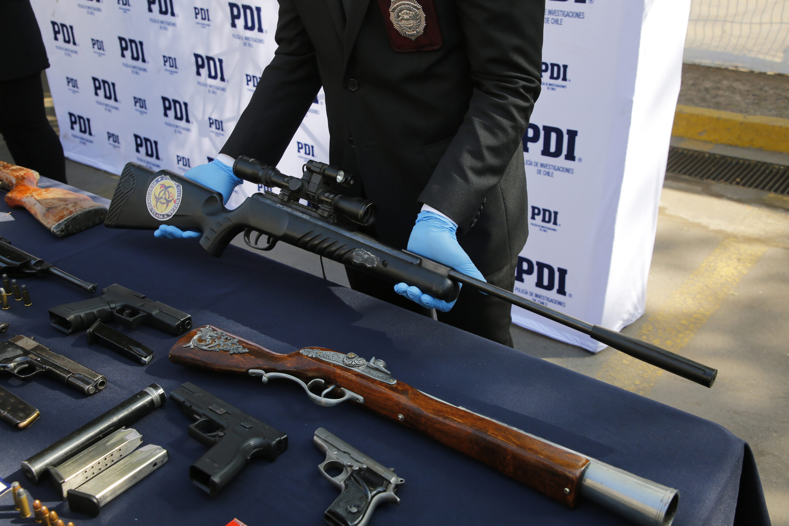 El subprefecto Hassel Barrientos, jefe de la Brigada de Investigaciones Policiales Especiales (BIPE) Antisecuestros, informó que se allanaron 19 domicilios, donde se encontraron “armas de fuego .45, 9 mm, .40, y munición para usarlas, además de un inhibidor de GPS, chalecos antibalas y gran cantidad de droga”.