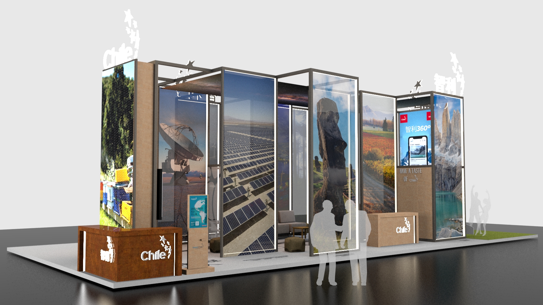 Asimismo, el espacio atraerá a los visitantes con activaciones como degustaciones de vinos, muestras folclóricas y bailes de Isla de Pascua, charlas de integrantes de la red ChileGlobal, el lanzamiento en idioma chino de la Guía del Inversionista por parte de InvestChile, y fotografías de los productos y lugares más emblemáticos del país.
