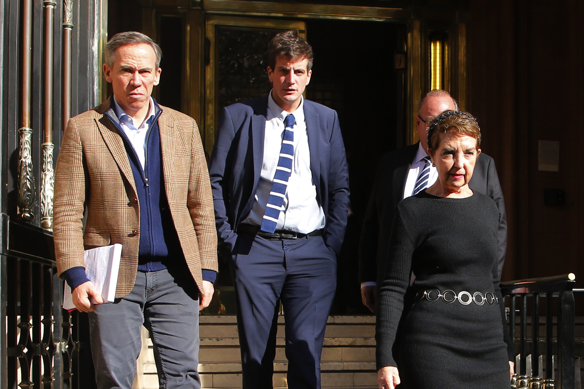 Los diputados Jorge Alessandri (UDI) y Diego Schalper (RN), y la consejera constitucional de Evopoli, Gloria Hutt, acudieron a la Contraloría tras el informe que declara ilegales los convenios por $13 mil millones entre el Gobierno y fundaciones.