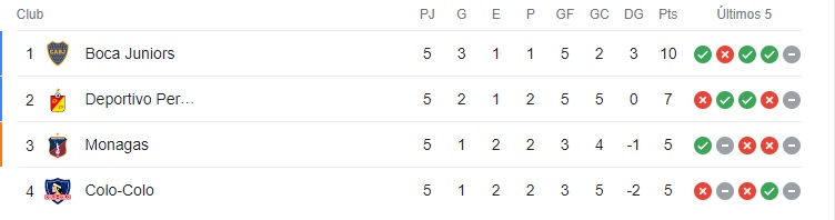 Horas antes del duelo con los xeneizes, Monagas se impuso en condición de local por 1 a 0 ante Deportivo Pereira, marcador que produjo un movimiento en la tabla de posiciones. En este momento, los venezolanos están el tercer lugar con 5 puntos, los mismos que el Popular, pero con mejor diferencia de gol.