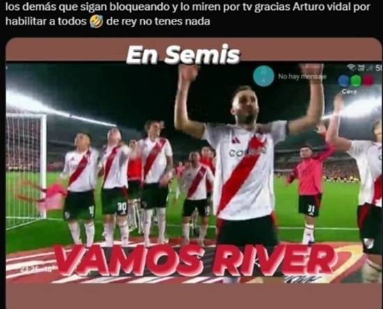 En este sentido, varios usuarios e hinchas del cuadro argentino se burlaron de la caída del Cacique en redes sociales, y viralizaron memes que tuvieron como protagonista a Arturo Vidal.