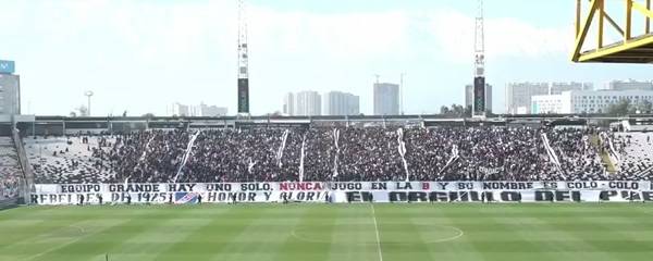 “Equipo grande hay uno solo. Nunca jugó en la B y su nombre es Colo Colo”, decía el lienzo que desplegaron en el sector Cordillera, en referencia al descenso que la U sufrió en 1989.