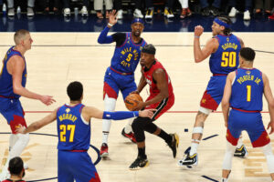 Una victoria sin problemas fue la que consiguieron la noche de este jueves los Denver Nuggets, que vencieron en condición de local a Miami Heat por un marcador de 104-93, quedándose con el primer juego de la serie en las Finales de la NBA. El dueño de casa dominó gran parte del encuentro, al punto … Continúa leyendo Con un Nikola Jokic estelar: Nuggets se imponen cómodamente a los Heat y toman ventaja en las Finales de la NBA