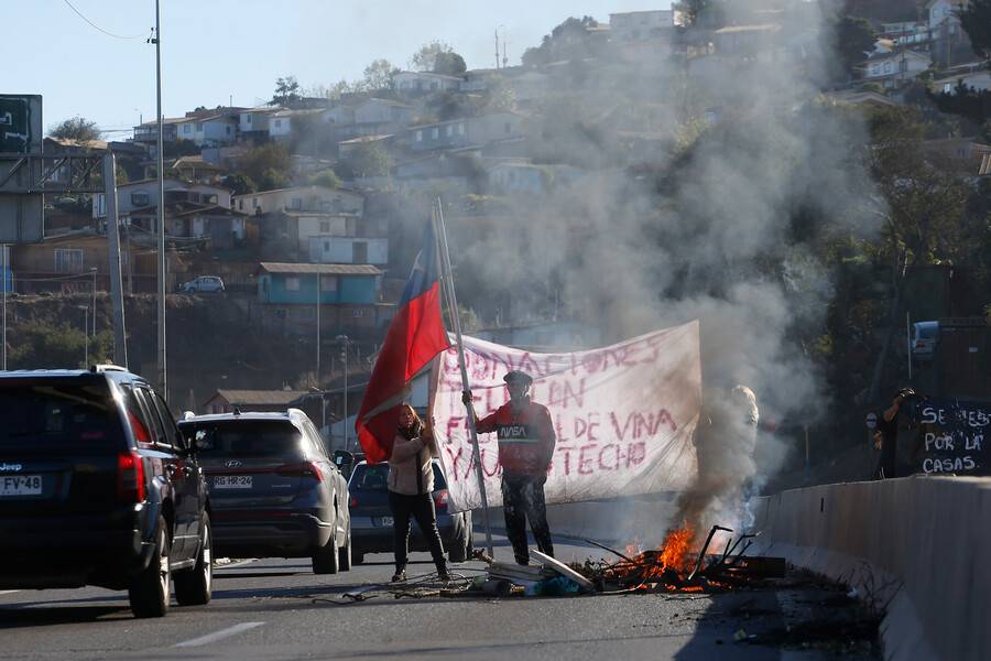 Vecinos afectados por el megaincendio de Villa Independencia protagonizaron una protesta con obstaculización de tránsito a la altura del paradero 10 de Achupallas, como una manera de “visibilizar este dolor y olvido del que son víctimas miles de viñamarinos”, afirmaron los convocantes.