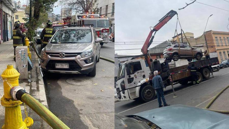 Debido a los vehículos mal estacionados, el municipio de Valparaíso procedió inicialmente a moverlos y luego a retirarlos del sector con una grúa.
