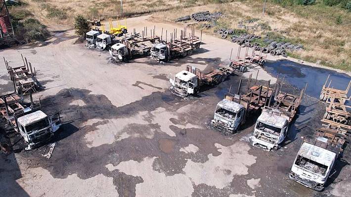 Meses después, en febrero de 2022, los mismos imputados —según el Ministerio Público— perpetraron un segundo ataque, incendiando 19 camiones forestales y una bodega en el sector Ciruelos, comuna de Mariquina. Actuaron encapuchados, durante la noche y portando armas de fuego, recogió Emol.