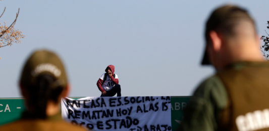 Deudor habitacional se trepa a letrero vial en Santiago por remate de su casa