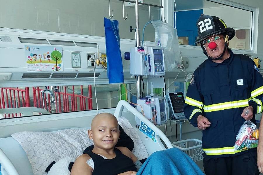 El Cuerpo de Bomberos de Santiago (CBS) visitó a niños y niñas pacientes oncológicos del Hospital Dr. Roberto del Río para entregarles un poco de alegría dentro de la conmemoración del Día Internacional del Cáncer Infantil.