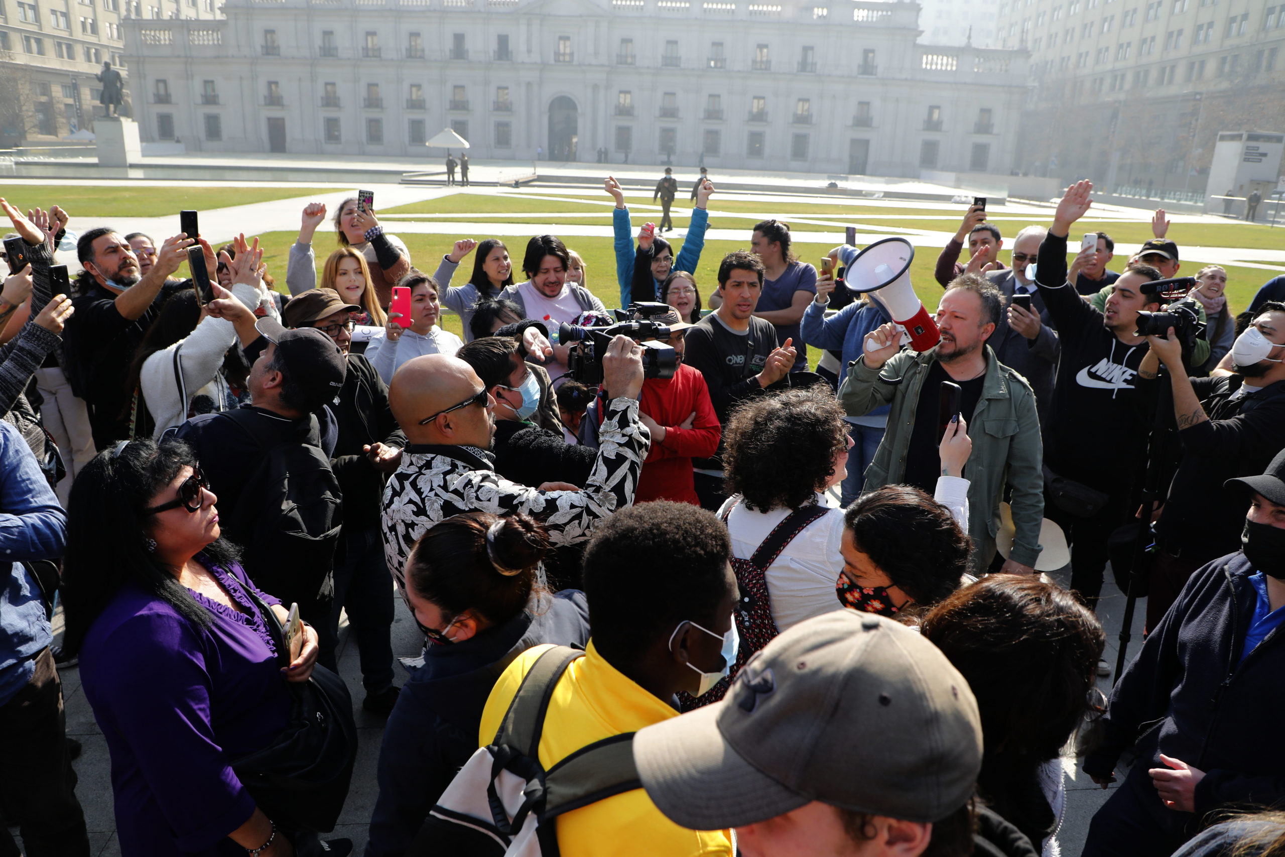 Alrededor de 50 personas, que se denominan “antivacunas”, se congregaron a las afueras La Moneda, con el fin de protestar en contra del Pase de Movilidad y otras medidas adoptadas durante la crisis sanitaria por el Gobierno.