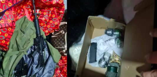 El teniente coronel Leonardo Alache informó que “había bolsas y al interior se encontraban las bolsas de nailon con droga, y en bolsos se encontró el armamento, la munición y estas granadas”.