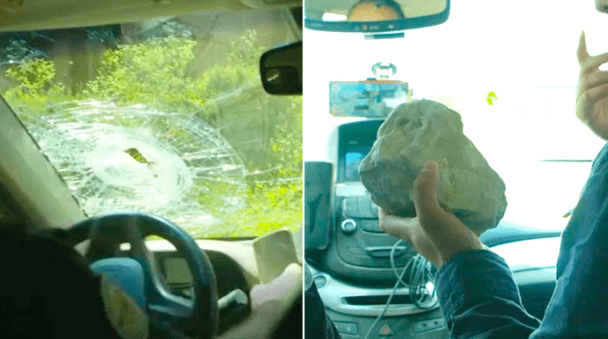 Durante el recorrido por un sector de Valparaíso, un periodista del matinal acompañaba a un funcionario de la ONG Grupo de Búsqueda de Vehículos cuando una enorme piedra impactó contra el vehículo.