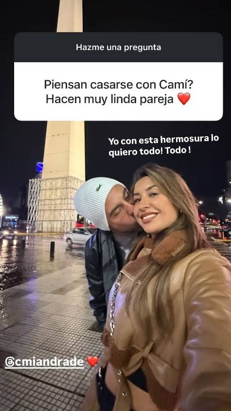 A través de una dinámica de preguntas y respuestas en sus historias de Instagram, un usuario le consultó al animador: “¿Piensan casarse con Cami? Hacen muy linda pareja”.