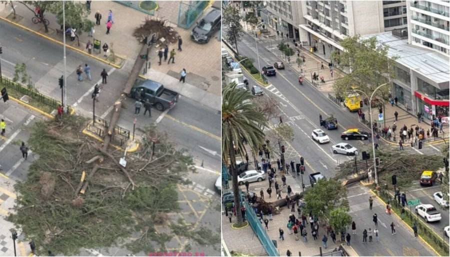 El hecho ocurrió a la altura de Marchant Pereira, pasado el mediodía, cuando el árbol se desplomó y quedó atravesado en la transitada arteria. La situación afectó directamente a una camioneta y a un automóvil que circulaban por el sector.