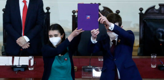 El Presidente Gabriel Boric ingresó a la sede del ex Congreso Nacional en Santiago para recibir de manos de la presidenta de la Mesa directiva, María Elisa Quinteros, la propuesta de nueva Constitución.