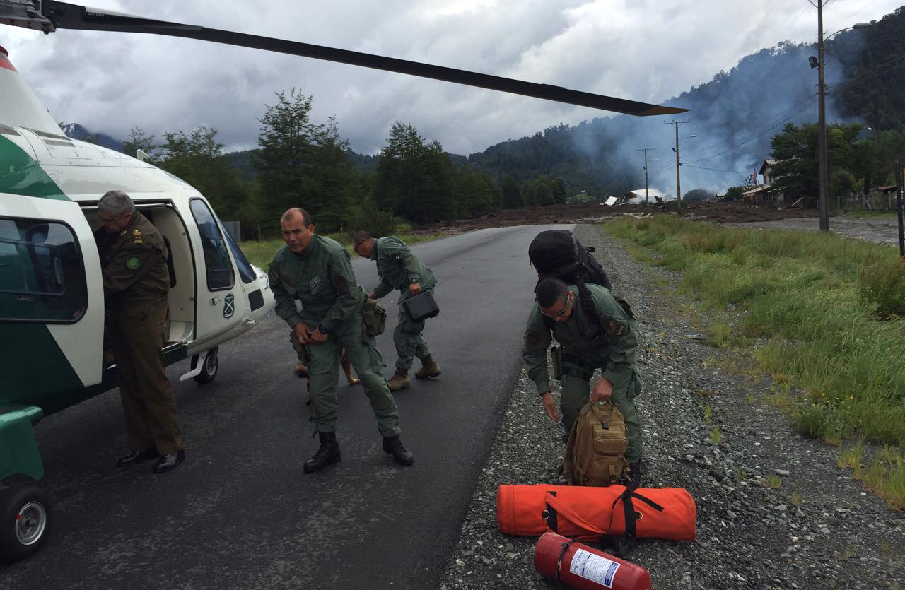 El Gobierno confirmó que hasta el momento se registran 3 personas fallecidas, 15 desaparecidas (8 identificados) y 3 heridas, además de 20 viviendas afectadas y un colegio destruido, producto del aluvión que afectó hoy al poblado de Villa Santa Lucía, en la comuna de Chaitén. La información se ha ido consolidando paulatinamente en la oficina central de la Onemi en Santiago, donde el subsecretario del Interior, Mahmud Aleuy, encabezó una mesa técnica para coordinar acciones ante la emergencia. Hasta ahora se ha entregado la identidad de dos de las víctimas fatales, Elsa Pineda Retamales, de 68 años, y Claudio Ojeda Mayorga, de 35, mientras que entre los desaparecidos se cuenta el carabinero Víctor Gabriel Chavarría Acuña, de 22 años, quien estaba custodiando la escuela de Villa Santa Lucía que mañana funcionaría como local de votación. El Gobierno también dispuso el desplazamiento a la zona de los ministros de Defensa y de Obras Públicas, José Antonio Gómez y Alberto Undurraga, respectivamente, para coordinar las labores de búsqueda de los desaparecidos, además del trabajo de recuperación de la conectividad. En las faenas de despeje de las vías de la zona, afectadas por deslizamientos, ya trabaja personal del Ejército y de Conaf, que se encontraba en el lugar por la temporada de incendios forestales. A estos se sumará Vialidad con 12 retroexcavadoras. Además se desplazó personal de Carabineros (Gope) y equipos especiales de la PDI, Bomberos (grupos USAR) y Fuerzas Armadas para la búsqueda de las personas desaparecidas. Asimismo se dispuso de un albergue para 100 personas que hasta este minuto no ha sido necesario utilizar. También se están desplazando recursos de abastecimiento de agua potable y se movilizan cuadrillas para trabajar en el restablecimiento de la electricidad. De manera provisoria, se ordenó el envío de 15 generadores de electricidad.