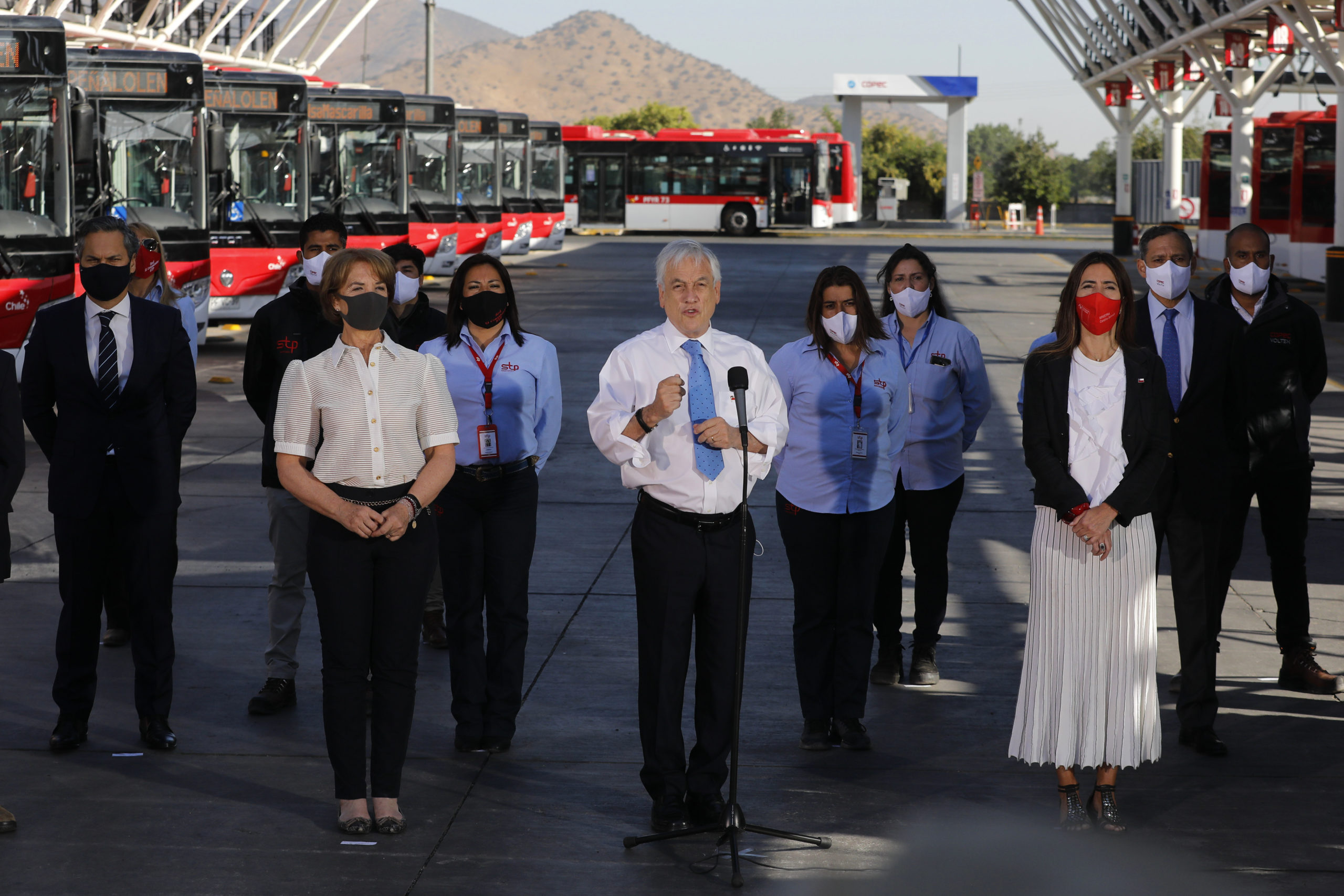 El Presidente Sebastián Piñera encabezó este jueves la inauguración el electroterminal El Conquistador en la comuna de Maipú, el mayor de su tipo en el país y que entrega suministro a los buses Red de la Región Metropolitana.
