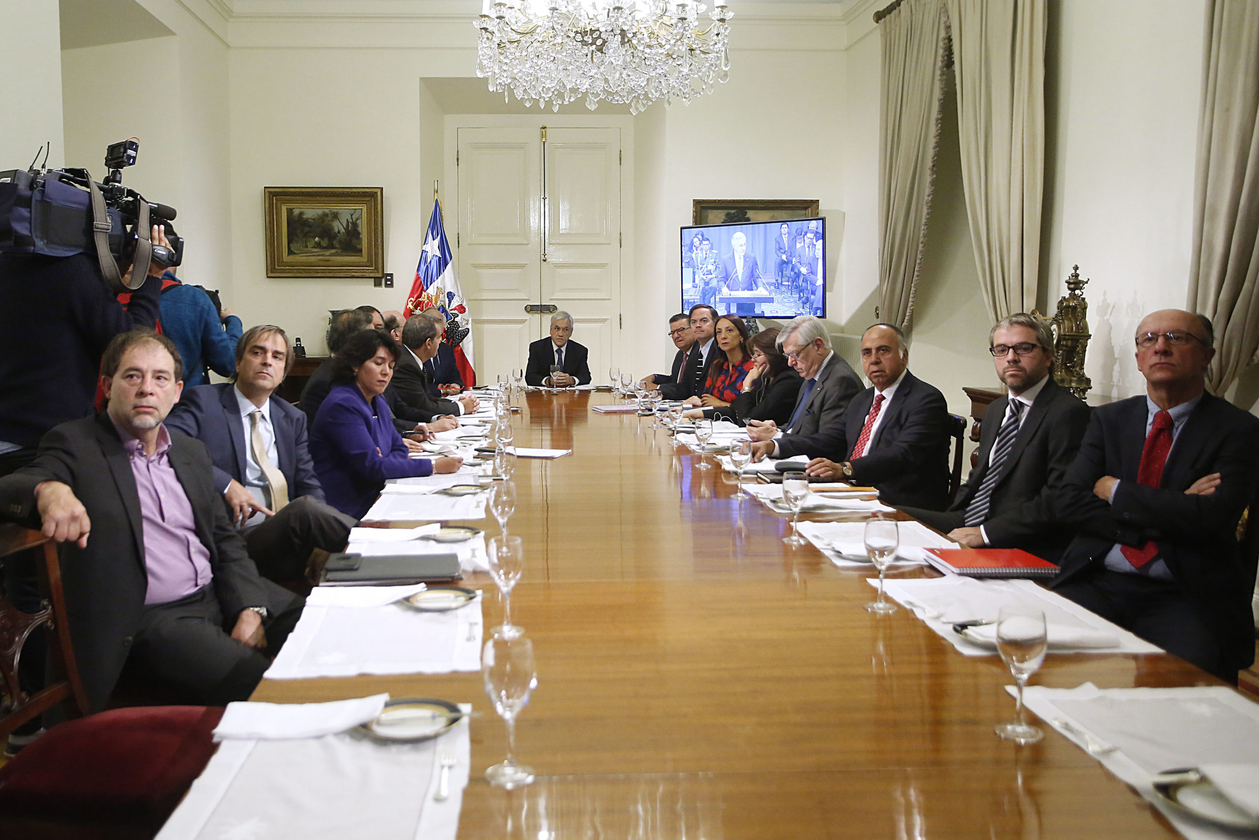 “Estamos en La Moneda, con los jefes de bancada de los diferentes partidos, y conectados con la delegación chilena en La Haya, analizando los argumentos de Bolivia”, aseguró el Mandatario en Twitter.