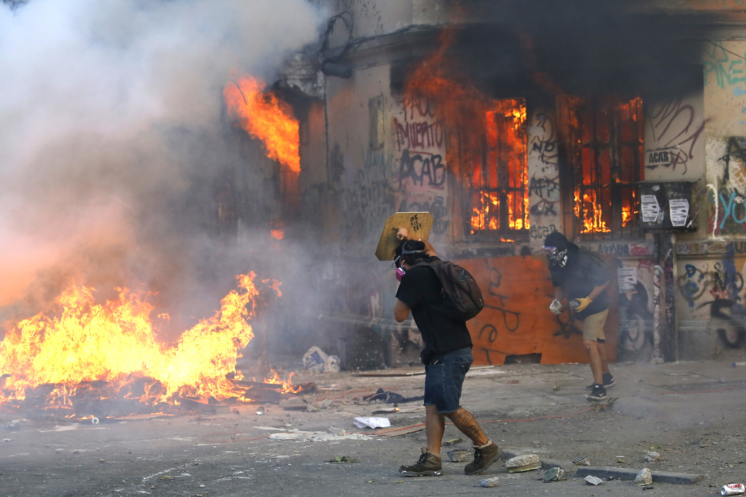 A lo menos 10 Compañías del Cuerpo de Bomberos de Santiago trabajaron para amagar las llamas del incendio que destruyó gran parte de un inmueble ubicado en la esquina de Vicuña Mackenna con Carabineros de Chile y que cuyo origen habría sido intencional. Según consignó radio Biobío, Bomberos detalló que el inmueble afectado era una casa habitación del Ministerio de Vivienda usado por estudiantes de otras ciudades. El fuego alcanzó ambos pisos, dejando daños totales en la estructura, en medio de protestas que se estaban desarrollando en el sector. Durante el combate a las llamas se debió evacuar a voluntarios que estaban en el interior, debido a una fuga de gas que debió ser controlada. La vivienda siniestrada se ubicada a un costado de una sede del Partido Comunista.