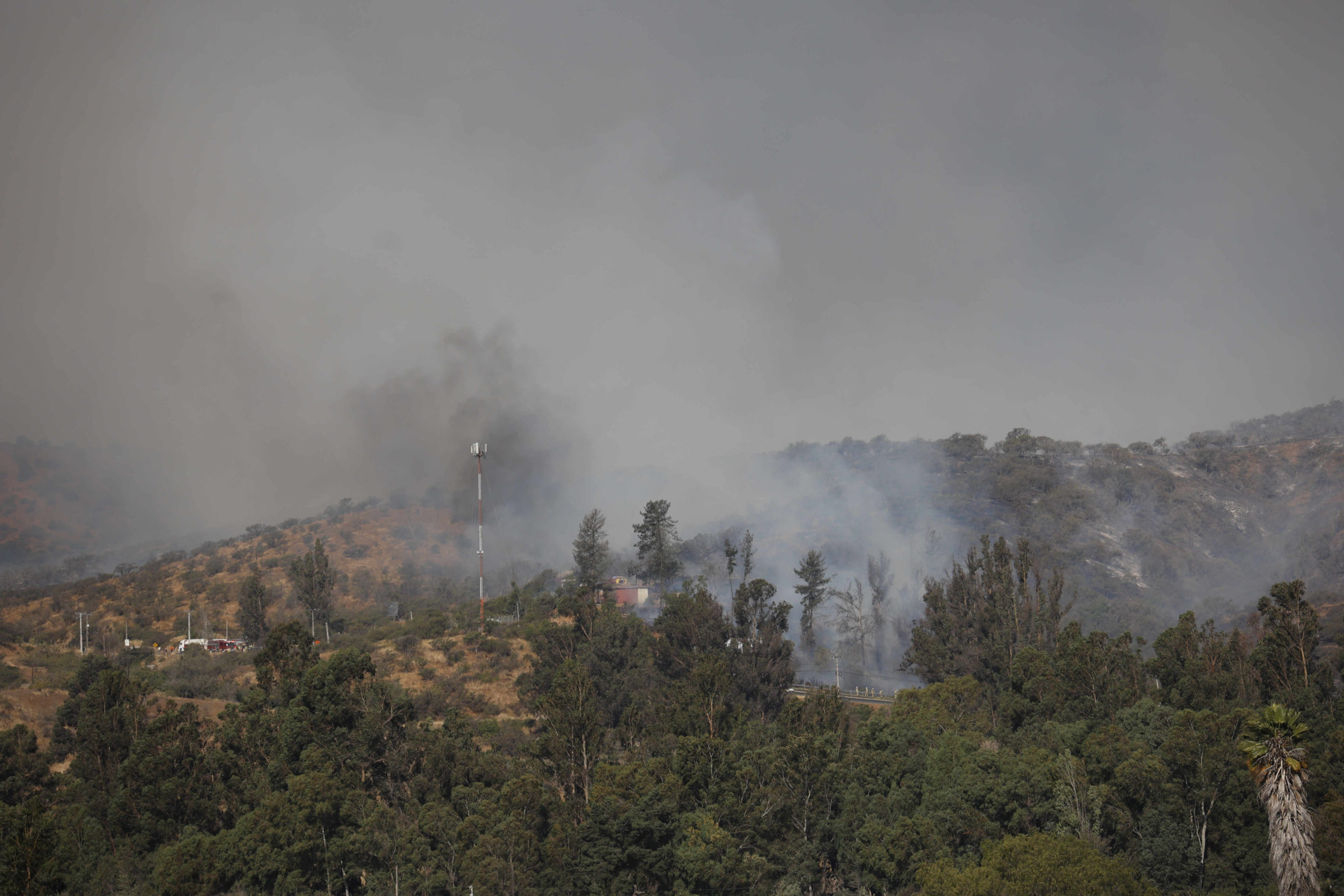 En tanto, el director general de Conaf, Christian Little, mencionó que el siniestro denominado Rosal 2 “tiene una superficie de 40 hectáreas entre desecho forestal y plantación”, y que trabajan en su combate cuatro brigadas terrestres, un helicóptero y un técnico.